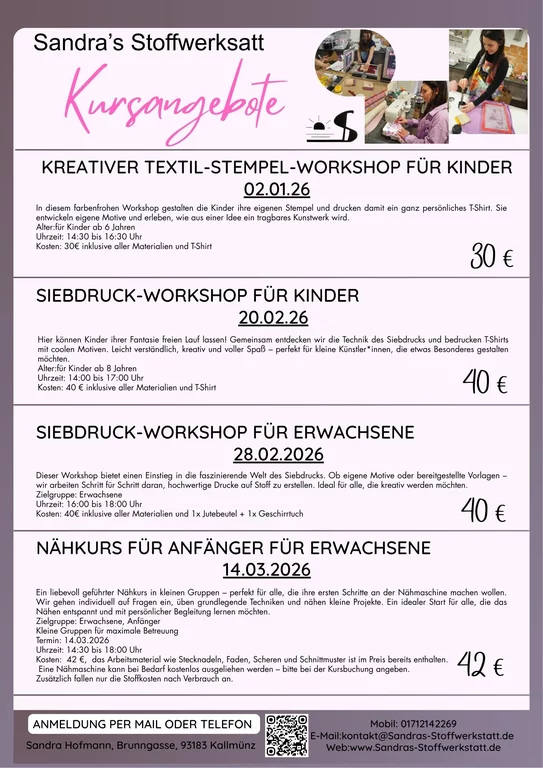 Ob Siebdruck oder Nähen - vom KINDERGEBURTSTAG über JUNGGESELLINNENABSCHIED bis zur Auszeit mit Freunden: