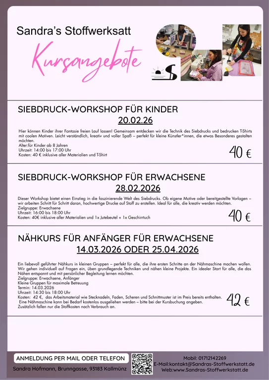 Ob Siebdruck oder Nähen - vom KINDERGEBURTSTAG über JUNGGESELLINNENABSCHIED bis zur Auszeit mit Freunden: